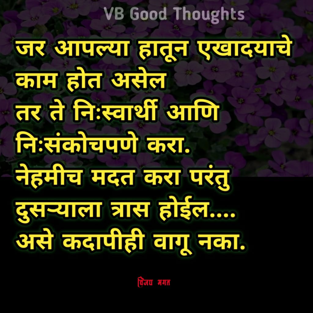 जर आपल्या हातून एखादयाचे काम होत असेलतर ते निःस्वार्थी आणि निःसंकोचपणे करा.नेहमीच मदत करा परंतु दुसऱ्याला त्रास होईल….असे कदापीही वागू नका.